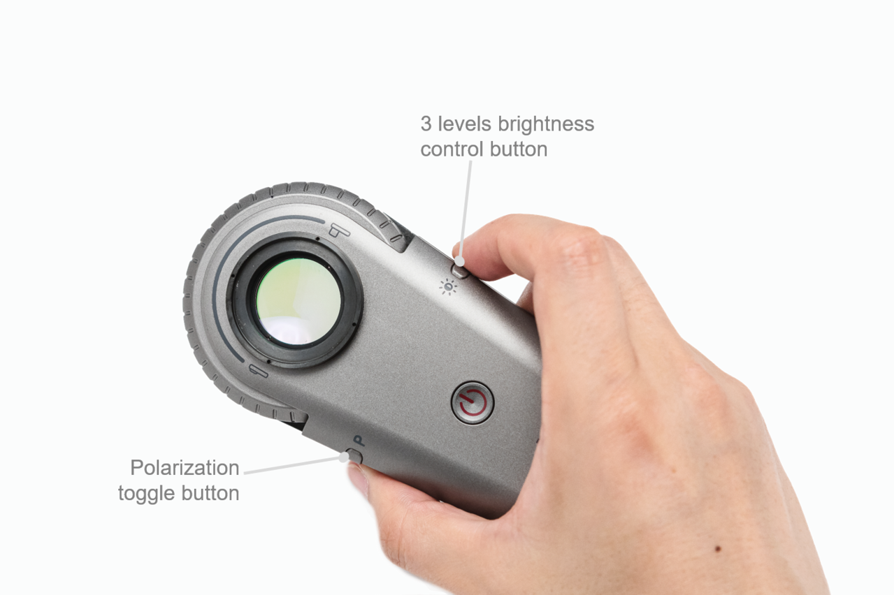 IDS-1100 has a new indicator that lights up when polarization mode is active. This indicator will be very useful to dermoscopy beginners and help to distinguish polarized and non-polarized images.